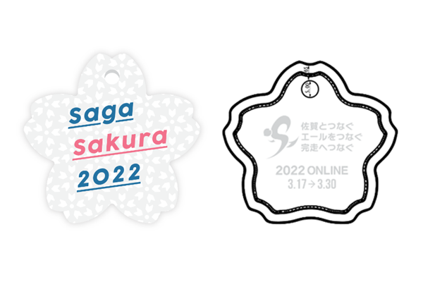 「さが桜マラソン2022オンライン」では、参加賞は佐賀自慢の特産品や大会グッズを選べます。今年は有田焼のメダルや、ナンバーカード、地元小学生からのメッセージカードを大会参加者全員にプレゼントします。